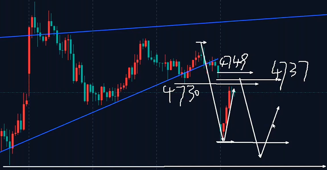 虽然目前是下破了支撑线,但并不意味着转空或者要大跌,怎么样,只不过从震荡上行转为震荡下行,或者就是一个单纯的震荡走势。不管怎么样,不会再破低4100,这一点不用担心,应该来说今年的低点就是在这里,后面就看是否去走二次探底的结构和形态。