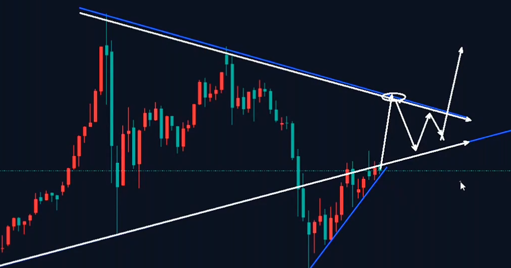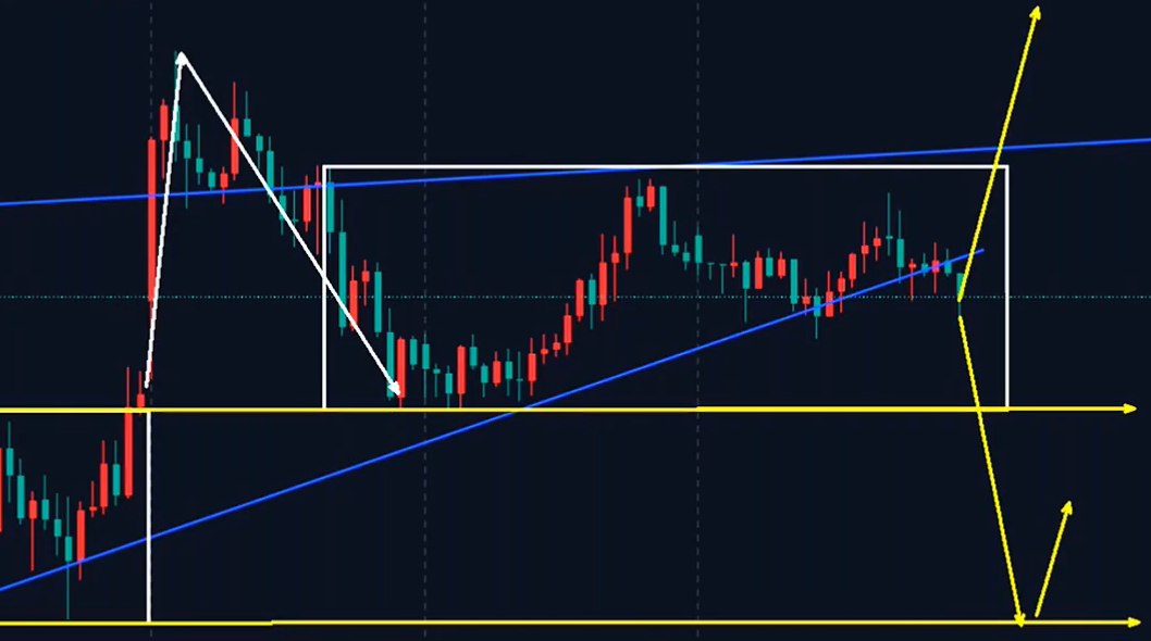 因为从日线上来看整体还是一个连阳单阴的上升格局,只不过是以震荡上行的节奏去走的,这一点需要注意。如果突破了压力线,就会去到上方的三角收敛结构内,那么进一步去挑战测试5100的概率就很大,也就是三角收敛的区间上沿,然后再选择方向突破三角收敛的结构。