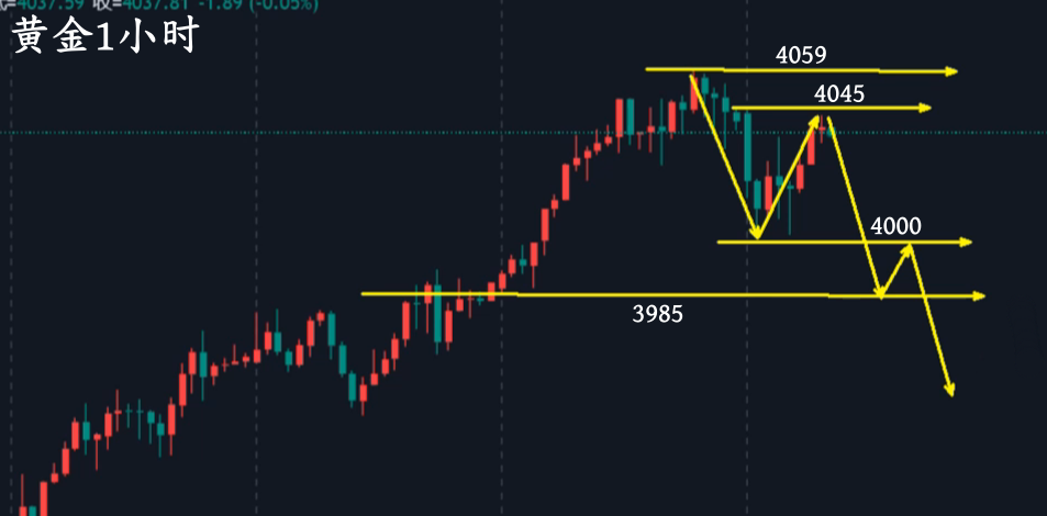 所以,今天黄金就先以震荡看待,上方压力在4045—4060高点,下方支撑看4000—3985一线,暂且先以这个区间看待即可。