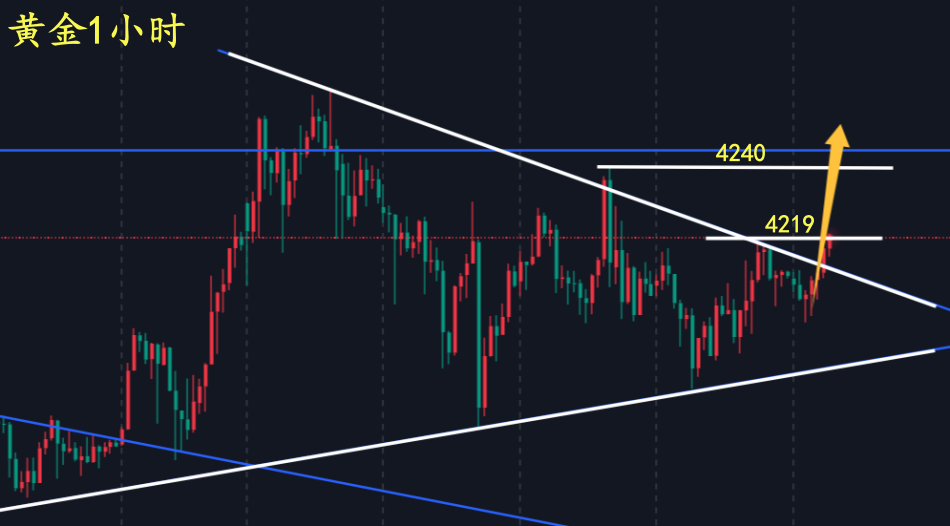 下方支撑大概在4180—4185区域,上方压力就看凌晨反弹高点,4219—4220一线,看延续北上最好是能够突破这个压力位,破位回踩看二次上升。进一步上看4240—4260,4265高点。总之,今天保持不空的思路,择机去看北上就行。