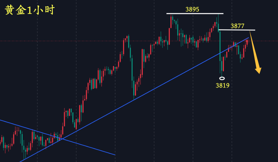 首先今天黄金还是建议不要在高位去追多,前一天在3895高点回落,日线收了一个倒锤线。昨天二次冲击3895高点,形成双顶压制下跌,美盘连阴走弱,最低触及3819,凌晨反弹收复一部分空间,日线收了一个阴十字。