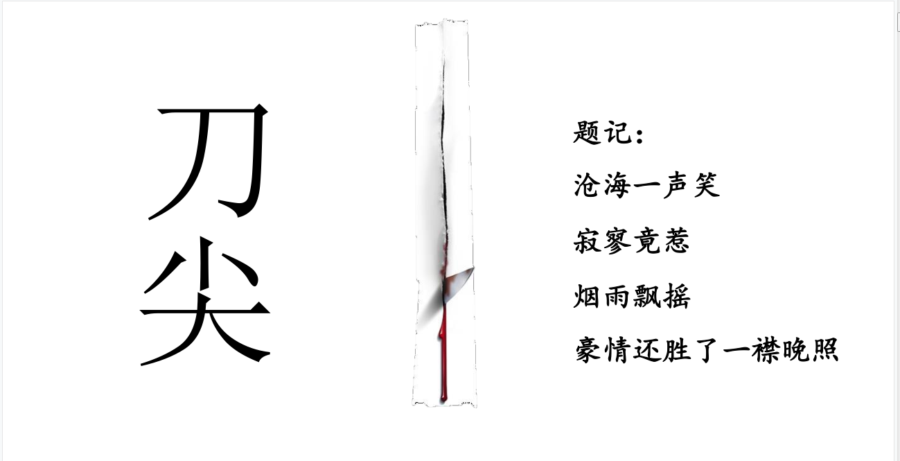 《刀尖》剧情简介:1940年抗战时期,日伪国共四方互相渗透,南京折叠成人间地狱。各方人员,嗜血行走,隐藏地下,在刀尖上跳舞,又在尘世中潜伏。他们是阴影中的尖刀,既然是刀,那就应该把它插在敌人的心脏上, 用敌人的鲜血染红信仰的旗帜。而在信仰的旗帜下,谁是战友,谁又是敌人?中共王牌特工金深水(张译饰)和林婴婴(郎月婷饰)与一群各怀心志的特工,抱着必死之心刀尖行走,堕入七杀...
