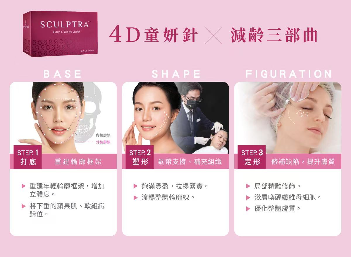 童颜针的正式名称为舒颜萃Sculptra,其主要成分是聚左旋乳酸(PLLA)。这是一种完全渐进式的胶原蛋白增生剂,在注射当下并不会带来明显的丰润感,而是需要等待1至3个月,待胶原蛋白逐渐增生后,才能看到显著的效果。旧款舒颜萃升级为4D版本后,有了质的飞跃。它增加了更多胶原新生的体积效应,能够刺激更多胶原蛋白生成,据原厂临床数据显示,至多可刺激两倍的胶原蛋白增生。而且,4D版本还标榜无需按摩就能拥有柔软的质地,这无疑为使用者带来了更多便利。