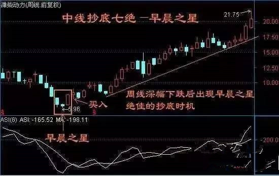 抄底是建立在深幅下跌的基础上,取周K线为体,以形态组合为用,趋势线与指标为参考。