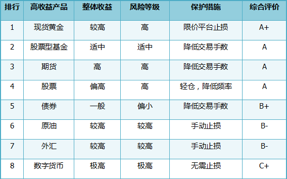和稳健型的投资方式相比,高收益理财产品是指预期回报率显著高于市场平均水平的投资工具或商品,其核心特征是收益潜力大,但一般会伴随着更高的风险或特定条件。由此可见,投资者在挑选高收益产品过程中,通常需要先充分了解产品之间的特性和风险等级,并尽量根据自己的经济状况、投资经验、风险偏好等因素,来制定出合理的投资决策,这也正是我们进行高收益理财产品排行的主要原因。