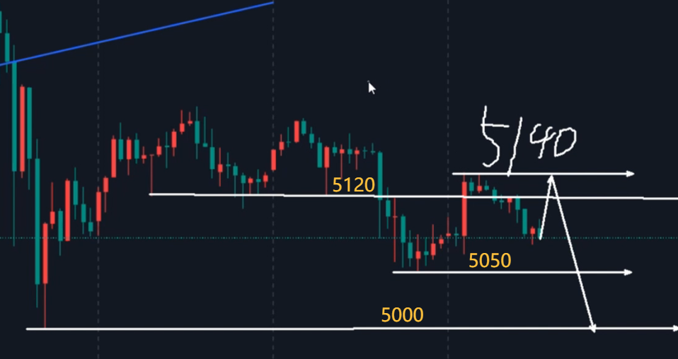 今天最重要的就是晚间九点半的大非农数据,在此之前本周黄金除了周一涨了一天,其余都是偏弱整理,5200双顶压制尤其明显。昨天美盘凌晨走弱,跌破了5120一线支撑,最低去到了5050,这就意味着5200—5120这个区间破位,整体态势属于震荡偏弱的节奏。