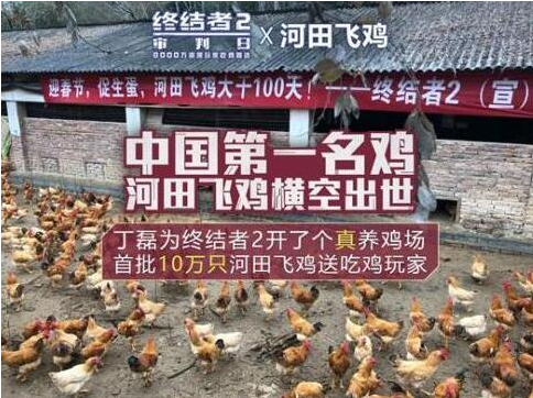 河田飞鸡养鸡场是网易专门为《终结者2》开设的一个专养河田鸡的养鸡场,这种飞鸡肉质鲜美,可以说是百里挑一的肉鸡。《与终结者2》最终一人吃鸡的理念类似,只有最终胜利的人才配吃到最好的鸡。