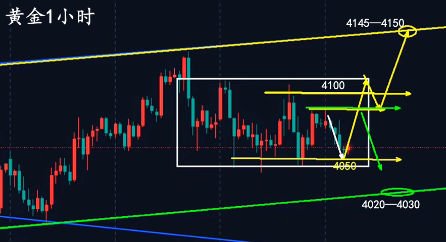 但是一般来说在非趋势的单边行情中,早间的走势延续性较差,欧盘的走势往往决定着一天的方向,晚间美盘可以再去看延续。所以,围绕4050一线支撑可以先去看一个反弹,上方压力在4087—4100一线如果欧盘能够走强,连阳上去的话,那么今天就是偏多的节奏,晚间回踩再去看二次北上,进一步上看4145—4150一线压力,大概就在上方的这个趋势压制附近。