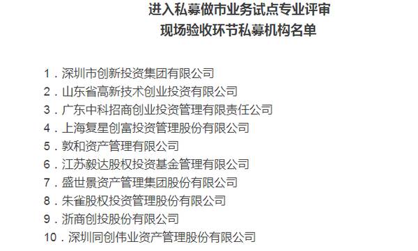 全国股转公司称,将指导、督促上述10家私募机构,尽快完成各项业务、技术准备,确保现场验收工作进度,推进私募机构做市业务试点顺利实施。