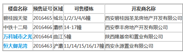 楼盘名称 预售证号 区域 可售楼栋 开发商名称