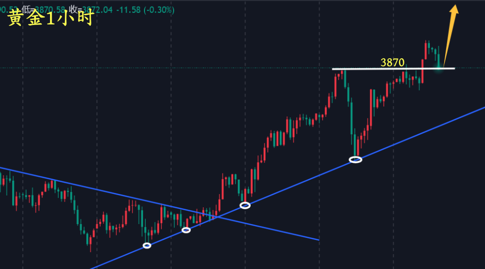 还是先回顾复盘一下昨日黄金的一个情况,那么昨天黄金在早间冲高3870以后,午后来了一个极速回撤,回踩的位置刚好是3790一线顶底转换位,晚间迅速收复失地,原封不动的上来了。