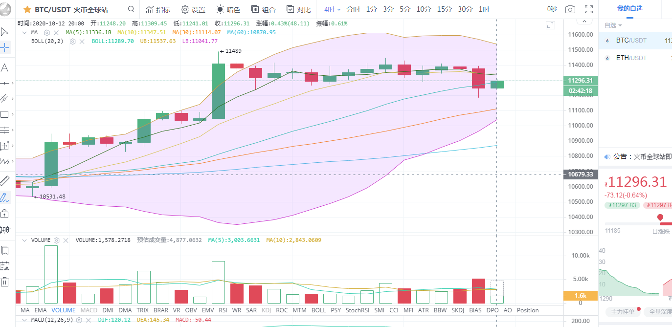 比特币行情分析:从日线上看,比特币昨日收取一根小阳线,已经呈现5连阳的局面,昨日比特币一直处于布林带上轨上方并未回到布林带中,布林带微微张口,5日均线勾头向上呈上攻之态,晚间虽有一波回调,但并未突破5日均线支撑,在触及5日均线后迅速反弹,表明下方的支撑力度仍然强烈。上方短暂关注11500一线压制。附图中MACD双线金叉向上发散于零轴上方运行,绿色动能柱逐渐放量。日级别上笔者认为大趋势还是看多关注公众号:彤欣言币。