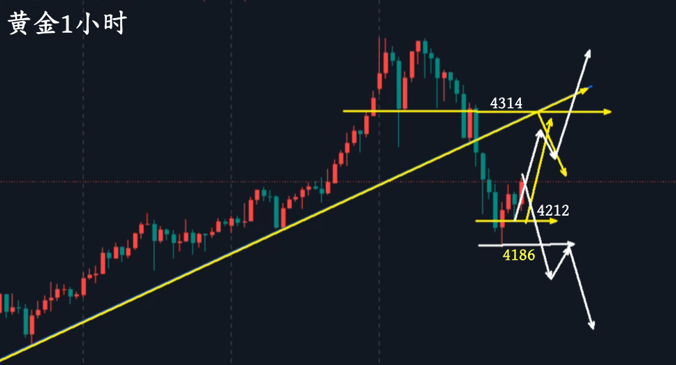 但是仅仅只是回落,回落的位置关注4280—4270这个区域,回落之后还是会继续往上走,再回归多头行情。